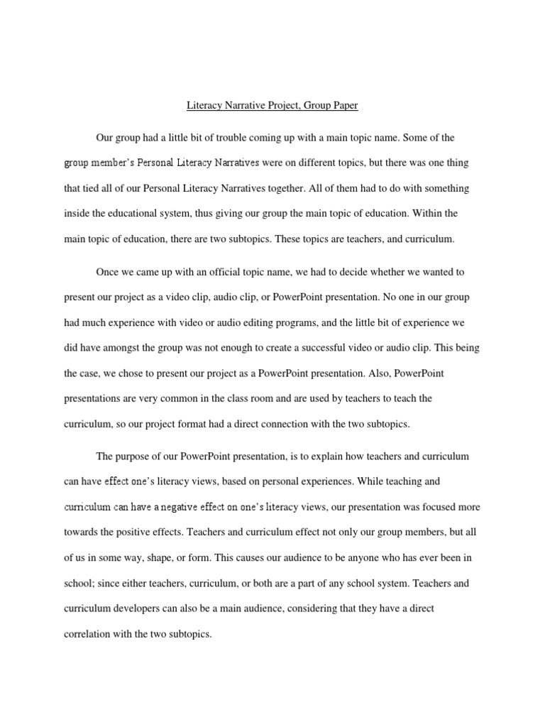 This video provides one answer to the question, what is a literacy narrative? the video is part of an itunes university course (documenting community. We've got 50 narrative essay topics designed to prompt students to craft memorable written feel free to print the entire narrative essay topics list for plenty of inspiration for your next narrative essay. They say a picture worth a thousand words…! Everyone knows the general benefits of education. A literacy narrative gives an account of an experience, usually a personal experience. The most interesting piece of writing you have ever read. Top 27 literacy narrative essay ideas of 2021 that we will share with you for your perfect essay paper. You search returned over 11828 essays for literacy narrative examples. Are booklovers becoming extinct creatures? Literacy narrative revolves around reflecting on feelings connected to reading and writing. Personal narrative stories ideas on traveling and holidays. How to choose narrative essay topics? Literacy narrative essay growing up in a bilingual household, i have struggled with many things especially reading and writing.